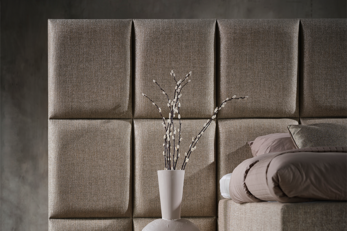 Dit hoofdbord biedt extra ondersteuning wanneer je zit of leest in bed en geeft de boxspring een luxueuze uitstraling.