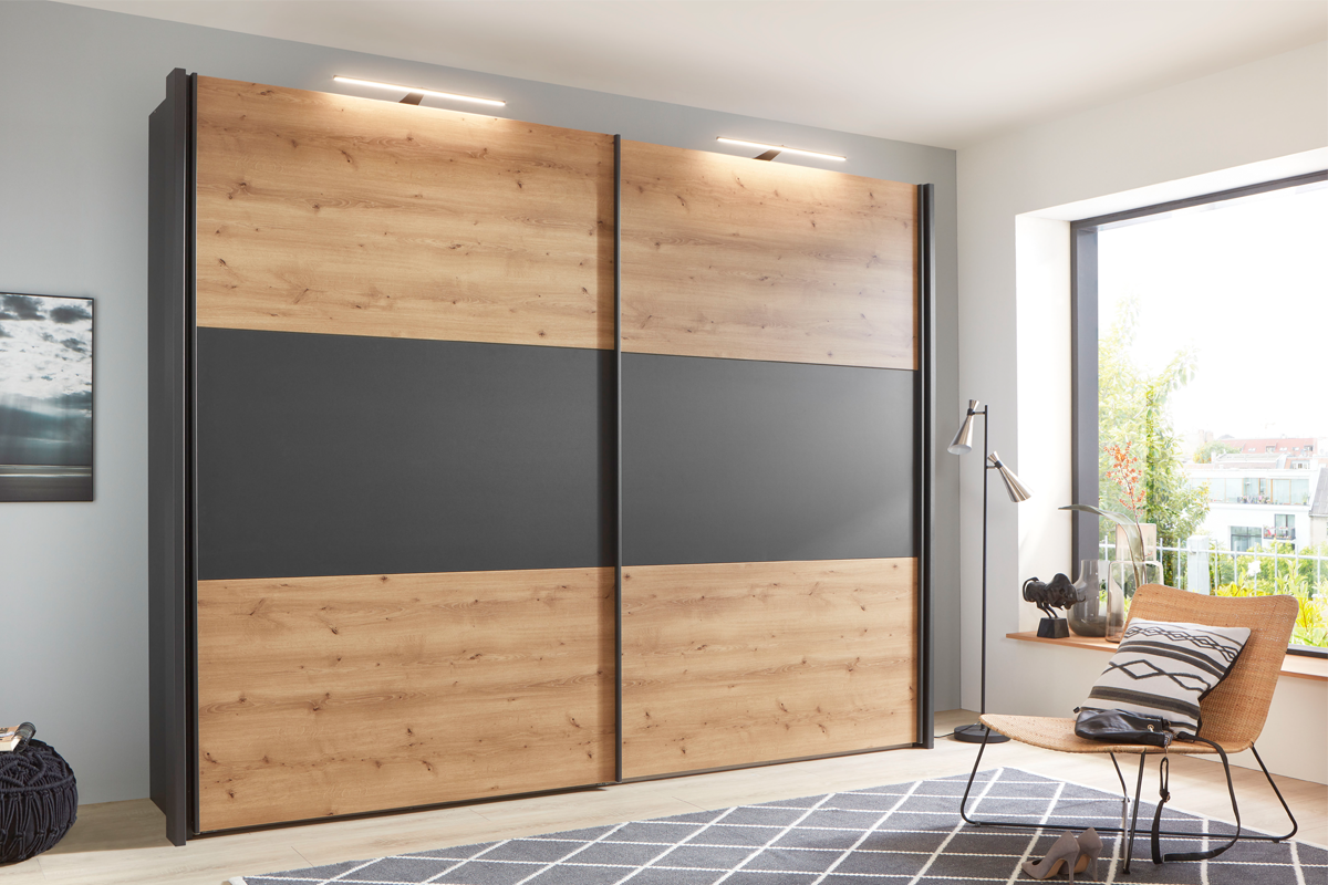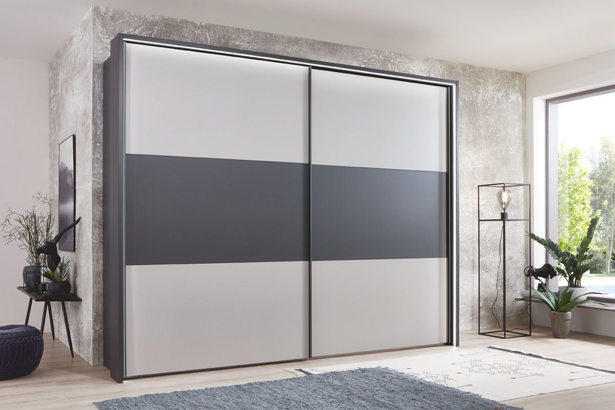 De Wiemann Kledingkast Korfu is een stijlvolle schuifdeurkast die perfect past in moderne slaapkamers dankzij zijn strakke ontwerp en aanpasbare opties.