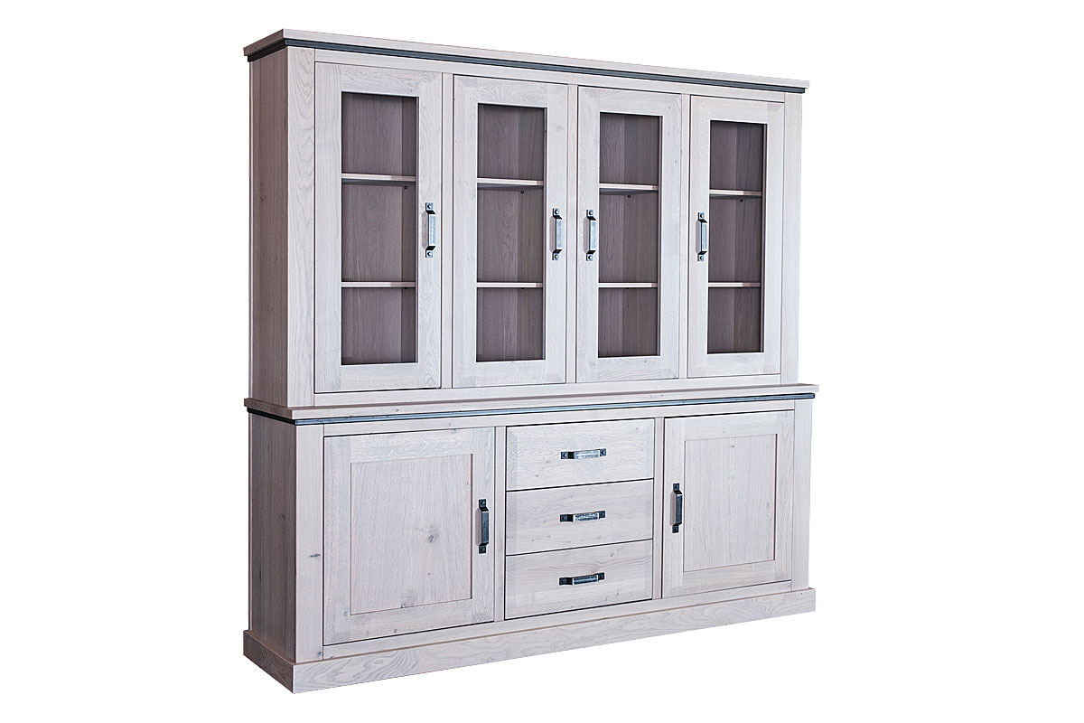 Het bovenste gedeelte van de kast is voorzien van glazen deuren, waardoor u uw mooiste servies, glaswerk of decoratieve objecten stijlvol kunt tentoonstellen.