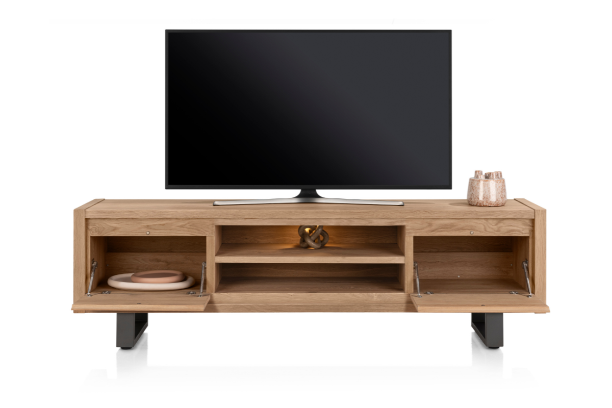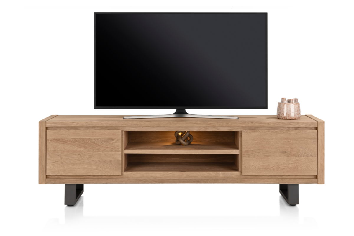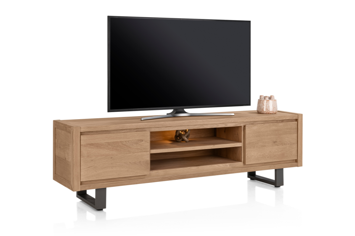 Hierdoor biedt het genoeg ruimte voor een televisie en extra spullen, zonder dat het meubel te groot oogt in de ruimte.