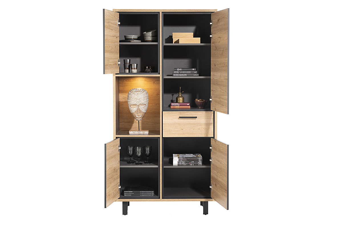 Het Happy@Home Woonprogramma Ostrava is een stijlvolle en veelzijdige meubelcollectie met een moderne, natuurlijke uitstraling. De meubels zijn ontworpen met strakke lijnen, subtiele handgrepen en stevige, zwart metalen poten die zorgen voor een eigentijdse look. Gemaakt van duurzaam gelamineerd hout, combineren deze meubels robuustheid met onderhoudsgemak en zijn ze vrijwel niet te onderscheiden van echt hout. De Ostrava-collectie omvat diverse meubelstukken, zoals eetkamer-, salon- en bartafels, die perfect te combineren zijn voor een harmonieus interieur. De natuurlijke kleuren en het functionele design maken deze collectie geschikt voor uiteenlopende woonstijlen, van industrieel tot minimalistisch.