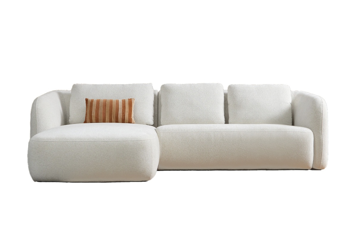 De bank is ontworpen om “zacht” te ogen: brede vlakken, afgeronde hoeken en een rustige vormtaal zonder drukke details.