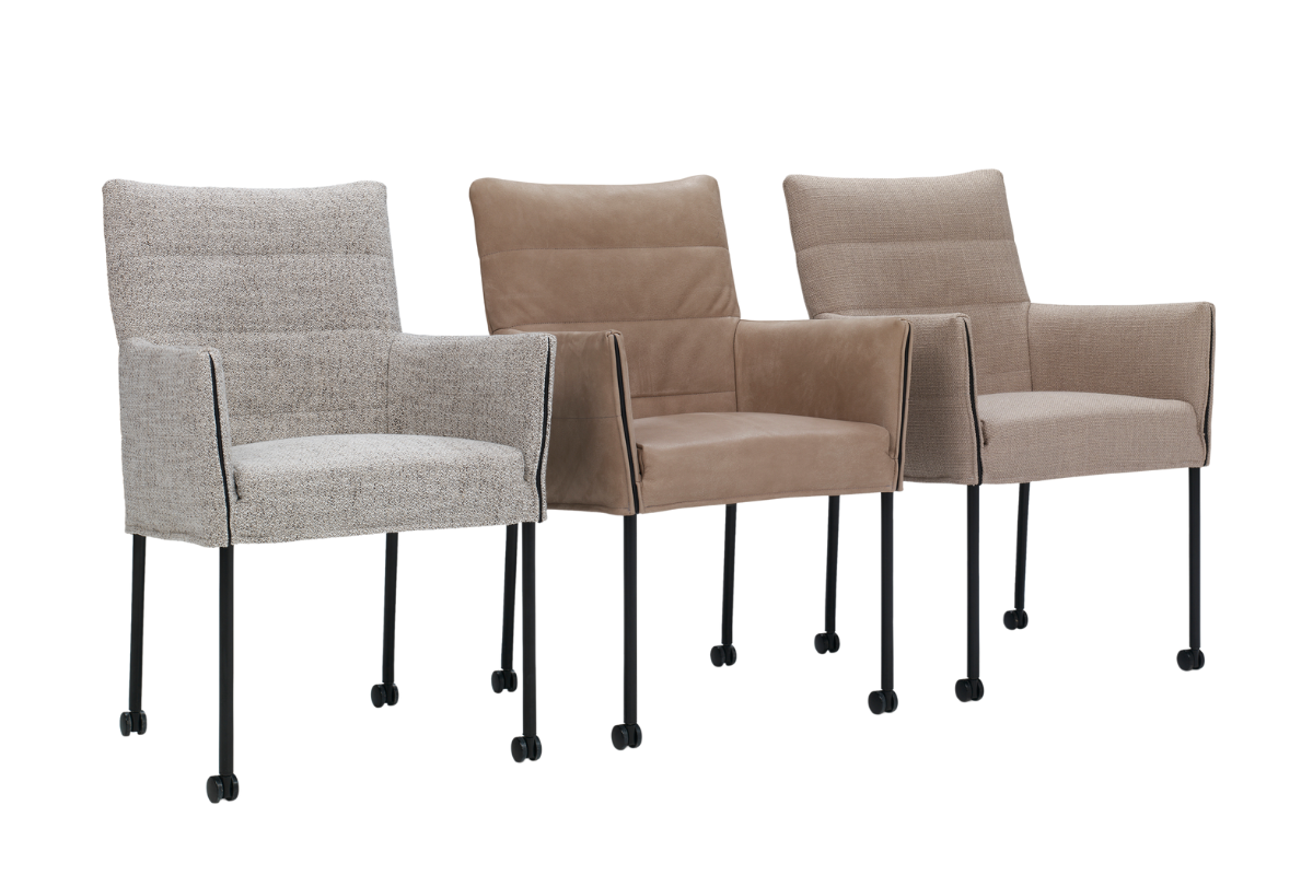De goed gevulde zitting en rugleuning zorgen voor optimale ondersteuning. Voor extra gebruiksgemak is de stoel leverbaar met verschillende onderstellen: