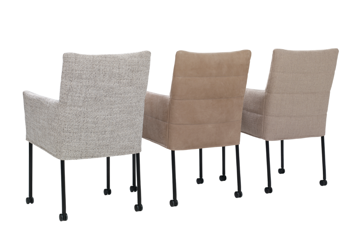 U heeft de keuze uit een breed scala aan bekledingsmaterialen, waaronder diverse stoffen en leersoorten, zodat de stoel perfect aansluit bij uw persoonlijke smaak en interieur.